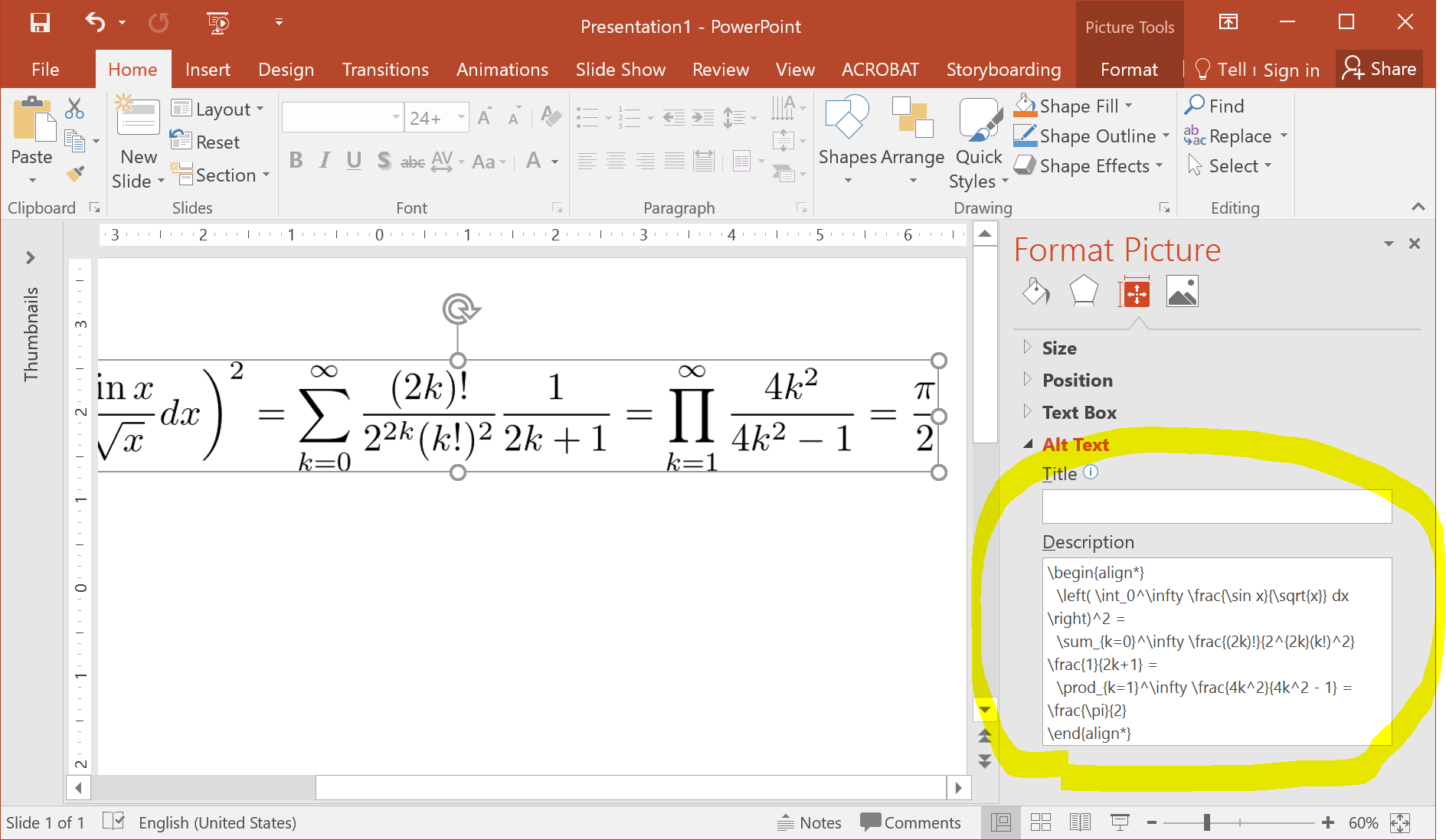 - You can retrieve TeX-code from images pasted in PowerPoint (see this).